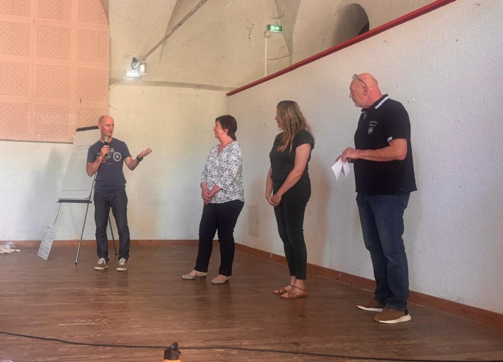 Le public a pu écouter l’intervention de Vincent Ducomet, comportementaliste canin et ancien éleveur ovin. Il a expliqué le rôle essentiel des chiens de protection dans la défense des troupeaux et présenté les attitudes à adopter pour les randonneurs lorsqu’ils rencontrent un troupeau.