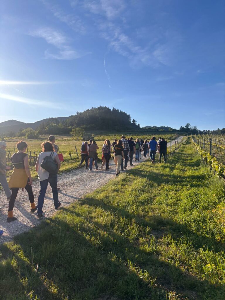 La soirée s’est poursuivie par une sortie sur le terrain avec les éleveurs de la ferme de Babrou, permettant d’observer les chiens de protection au travail auprès du troupeau.
